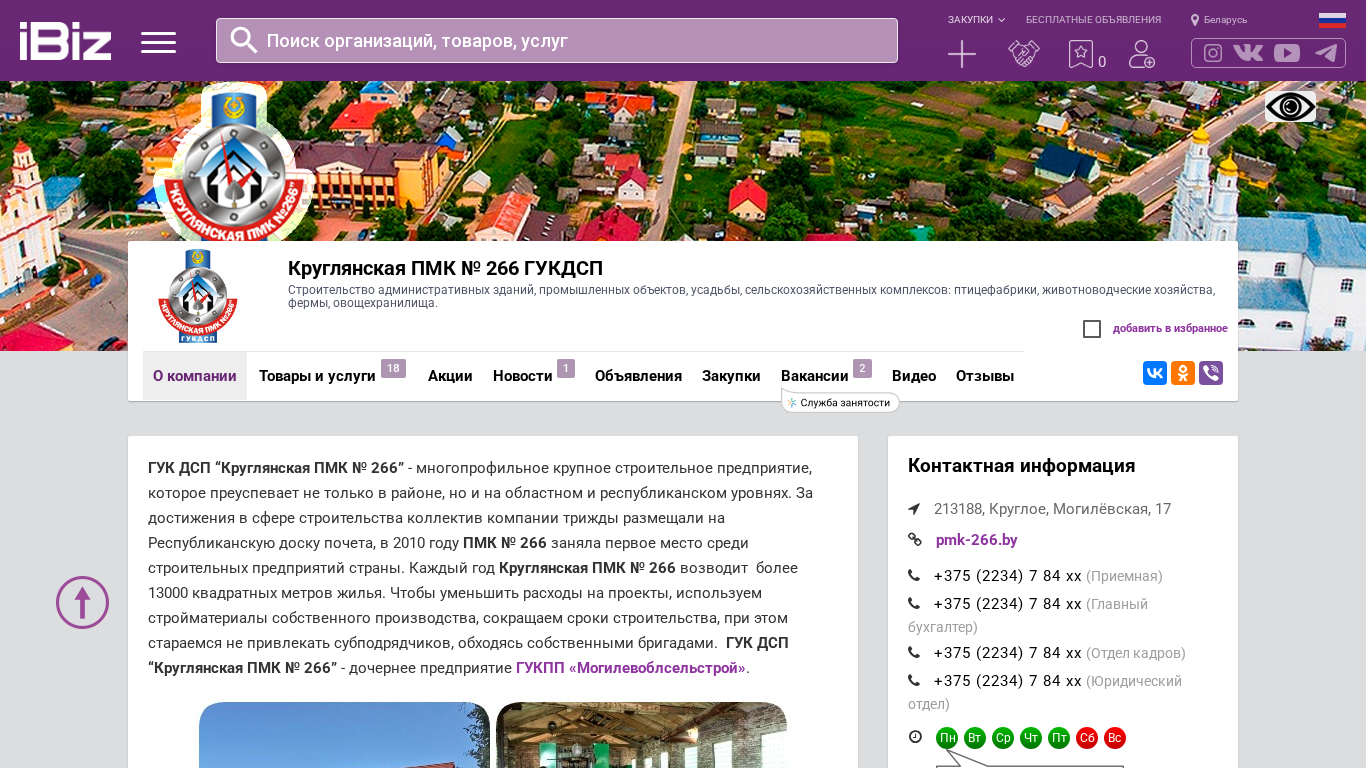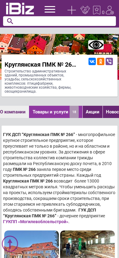 | AI-анализ | The web project pmk-266.ibiz.by is dedicated to construction services provided by Kruglyanskaya PMK № 266 GUKDSP. The company specializes in the building of administrative structures, industrial objects, estates, agricultural complexes including poultry farms, livestock farms, farms and vegetable storage facilities. The website contains information on the company's location in Krugloe, Moгилёвская oblast, Belarus, and provides contact details. The business is a multifaceted, large-scale construction enterprise that has achieved success not only locally but also on a regional and national level, having been awarded three placements on the Republican Honor Roll in 2010, and ranked first among building companies in the country that year. The company constructs over 13,000 square meters of living space annually, and aims |