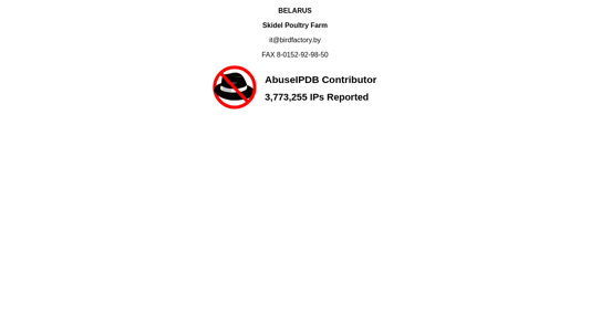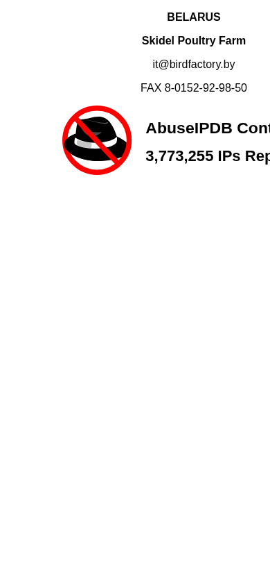The website "Welcome to BirdFactory.by - Skidel Poultry Farm" is the online presence of a poultry farm located in Skidel, Belarus. The title and description of the site both reference the farm and its location. The domain name is "birdfactory.by," and the top_words indicate a focus on birds and farming. The site includes an email address (it@birdfactory.by) and a phone number (FAX 8-0152-92-98-50) for contact information.