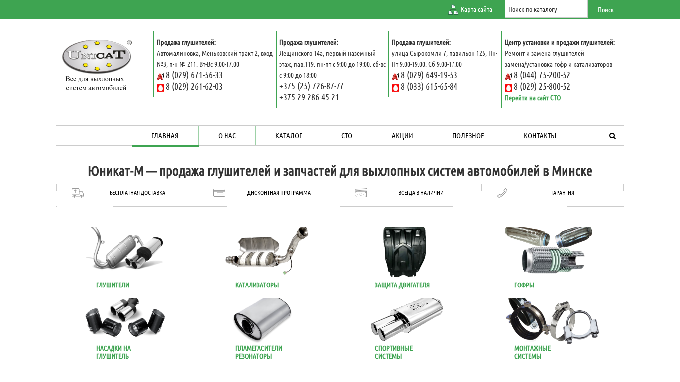 | Название / Заголовок | Глушители, катализаторы и всё для выхлопных систем автомобилей в Минске | ЮНИКАТ |
