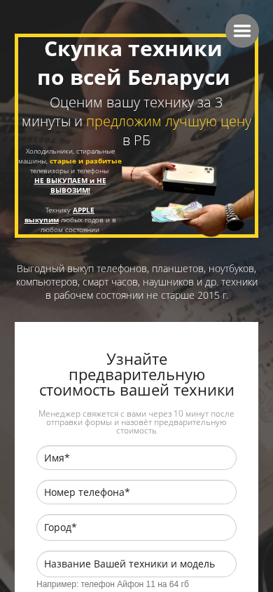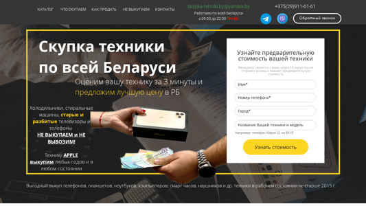 | SEO-описание | Выкупим вашу б/у и новую технику. Быстрый выкуп техники. Работаем по всей Беларуси. Скупаем: Телефоны, ноутбуки, компьютеры, системные блоки, планшеты, умные часы и наушники, телевизоры, фото-технику, игровые приставки и геймпады а также другие умные гаджеты. Звоните +375(29)911-61-61. |