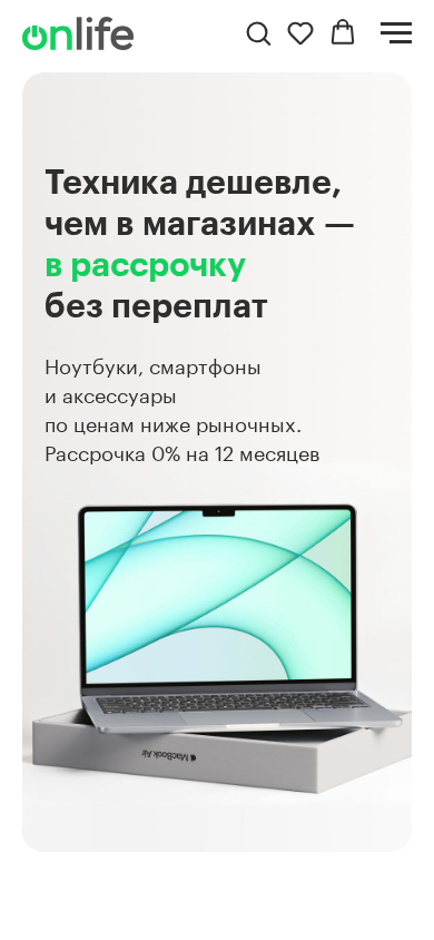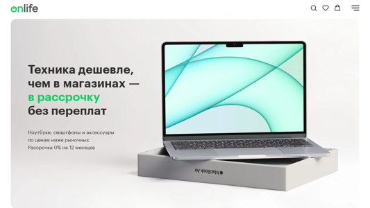 | AI-анализ | --- The website is an e-commerce platform selling notebooks, smartphones, and accessories at lower prices than in physical stores, offering a financing solution with zero interest for up to 12 months. The site includes a catalog, delivery information, and an option to place an order. Users can input their name, email, phone number, and delivery address, and agree to the personal data processing policy. The site also has a "Favorite Items" section. The homepage displays messages about affordable technology and the ease of applying for financing, as well as delivery information and a link to the catalog. The company is identified as OOO "OnLife" with the UNP number 193 712 117. |