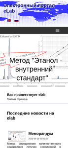 | AI-анализ | This website is the electronic portal eLab, which serves as an informational center for various scientific and technological topics. It offers methodological materials, programming products, news and announcements, useful links, and forums. The main focus of the portal is the method "Ethanol as Internal Standard," which deals with determining the quantitative content of volatile components in alcoholic beverages using gas chromatography. The website also covers projects like BelNET, a portal for nuclear knowledge, and CoExAn, a portal in the field of nanotechnology. Additionally, it provides information on scientific conferences and events, online calculator support, certificates and partnerships, and contact details. The website's privacy policy is also accessible. The portal is operated by elab and features the latest news on elab, as well as documents related to the method "Determination of the mass concentration of aldehydes, |
