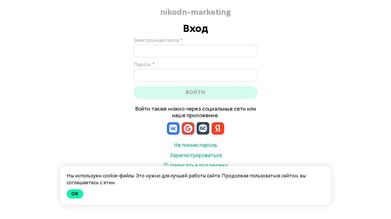 | SEO-лексика | пароль войти страница входа nikodn-marketing вход электронная почта также можно через социальные сети наше приложение помню зарегистрироваться написать поддержку используем |