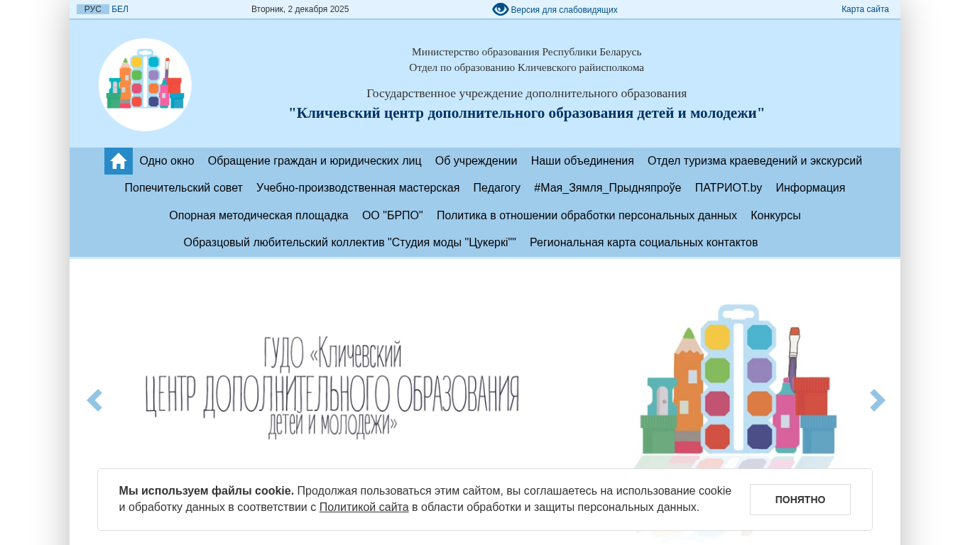| Название / Заголовок | Кличевский центр дополнительного образования детей и молодежи |