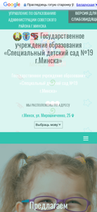 | AI-анализ | The website is for the Special Kindergarten No. 19 for Children with Vision Impairments in Minsk, Belarus. The title of the website is "Государственное учреждение образования «Специальный ясли-сад №19 г.Минска для детей с нарушением зрения»" (State Educational Institution "Special Kindergarten No. 19 for Children with Vision Impairments in Minsk"). The description section is not provided. However, from the keywords and top_words data, it can be inferred that the website offers various educational services and administrative procedures for parents and guardians of visually impaired children, as well as contacts and policy information. The website appears to have versions for visually impaired users and regular users. It is located at g.Minsk, ul. Miros |