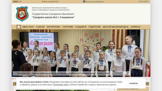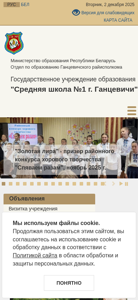 | AI-анализ | --- The web project "Средняя школа №1 г. Ганцевчи" is a website of a secondary school located in the city of Gancavichi, Belarus. The site is operated by the Ministry of Education of the Republic of Belarus and the Gancavichi district administration. The main topics covered on the site include the school's administration, contact information, class schedules, news, and various educational resources. Keywords associated with the site include "school", "classes", "education", "Gancavichi", and "schedule". The site offers resources for students, parents, and the community, including information on the school's history, policies, and extracurricular activities. The site also features a library, a business style dress code policy, and information on using mobile phones in school. Additionally, the site provides resources for students with disabilities and offers a parents |