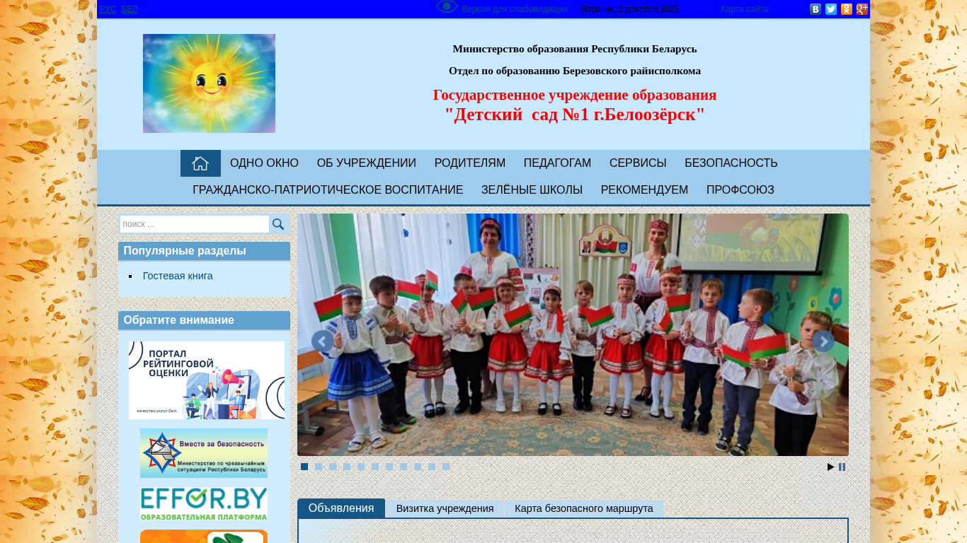 | Адрес | Детский сад №, 1, г. Белоозёрск», Наш адрес:, 225215, Брестская обл., Березовский район, г. Белоозёрск, ул. Ленина, 23 |