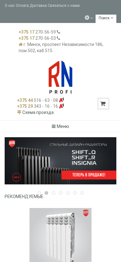 | Название / Заголовок | Купить радиаторы отопления, котлы, водонагреватели в Минске по недорогой цене на официальном сайте ООО "РН-Профи" |