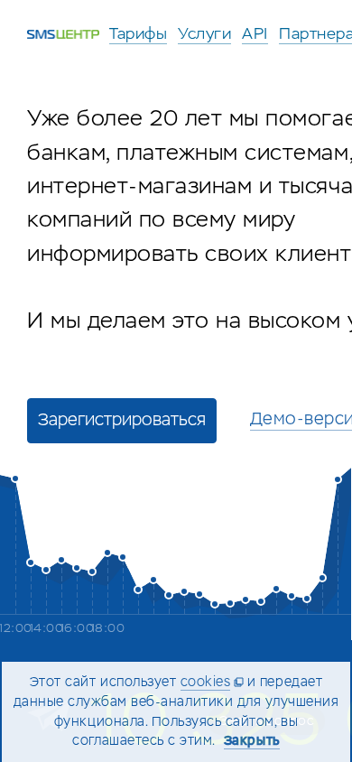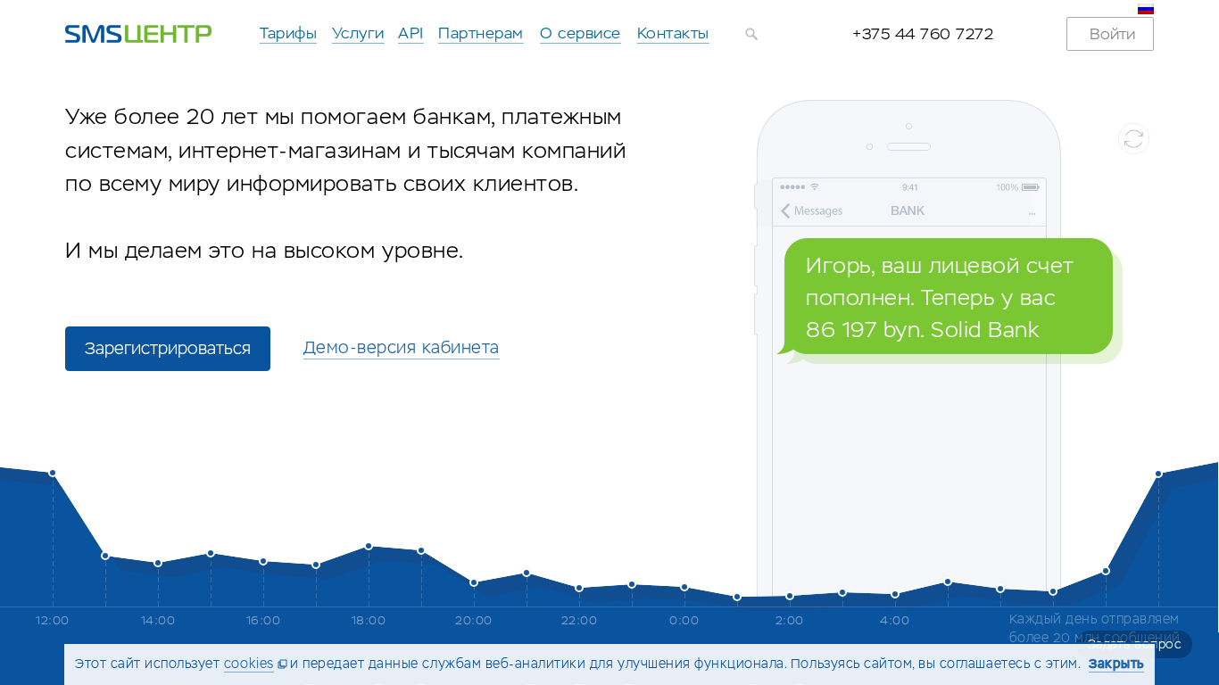 | SEO-описание | SMS Центр – сервис для отправки и приема SMS-сообщений, EMS и бинарные SMS, E-mail2sms, HLR, MMS, Voice, E-mail рассылки и другое. Гарантированная доставка сообщений по всему миру, удобные тарифы и API-интеграция. |