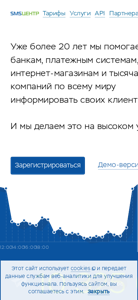 | AI-анализ | --- The portal SMS Центр offers a service for sending and receiving SMS messages, EMS and binary SMS, email2sms, HLR, MMS, voice, email broadcasting, and more. It guarantees message delivery worldwide, competitive tariffs, and API integration. |