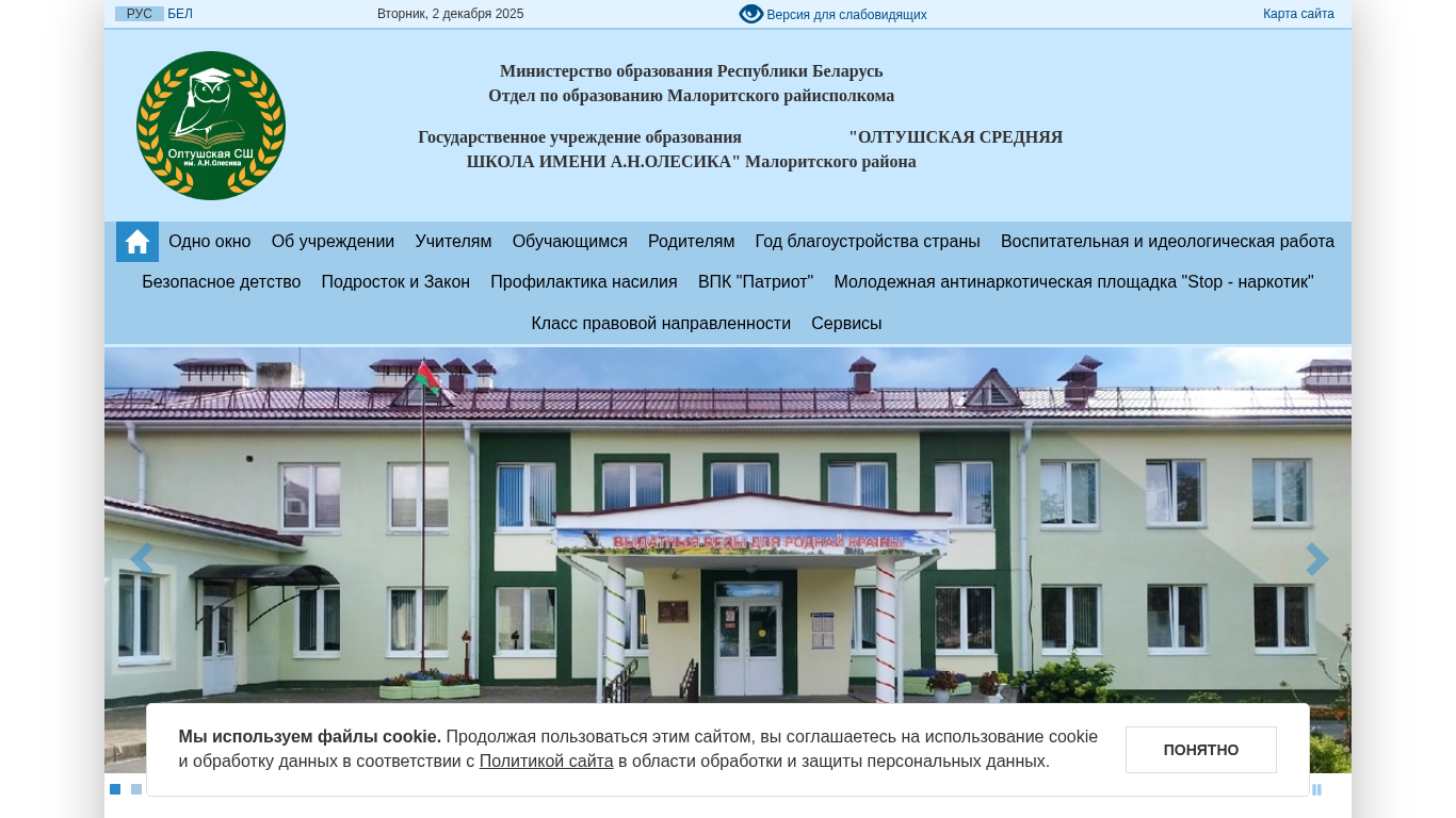 | Адрес | школа имени А.Н. Олесика" Малоритского района, 225921, Брестская область, Малоритский район, аг.Олтуш, ул. Советская, 120 |