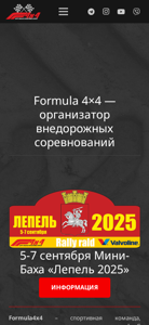 | AI-анализ | This online resource, formula4x4.by, is the website for Formula 4x4, a sports team and organizer of off-road competitions. The website features information on upcoming events, including the 'Mini-Baha Lepeль 2025' taking place from September 5-7, and the 'RFC Belarus 2025' in Molodechno on May 31, 2025. The team is experienced in organizing and judging off-road events, and places significant emphasis on the social aspect, with special nominations and contests for spectators, children, and the next generation. Formula 4x4 is open to collaboration and currently working on their own series of races, including the 'Formula 4x4' circuit race and the 'Rainforest Challenge' world series. The team's news section |