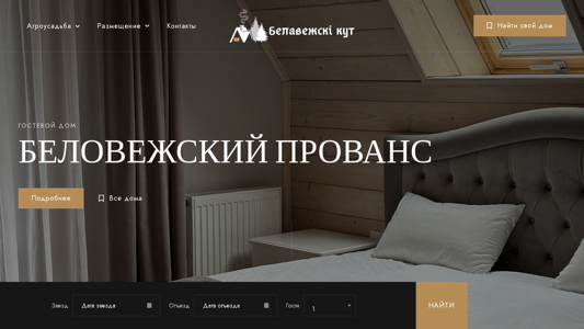 | SEO-описание | БЕЛОВЕЖСКИЙ ПРОВАНС Гостевой дом Подробнее Все дома Скандинавский Хюгге Гостевой дом Подробнее Все дома Обязательные для заполнения поля обозначены * Заезд * Отъезд * Гости 1 2 3 4 5 6 7 8 9 10 Найти Ваш уголок тишины Беловежская Пуща: Там, где время течёт в ритме природы Беловежская Пуща — сердце Беларуси, где туристические |