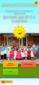 | AI-анализ | The portal <Детский сад № 4 г. Сморгони> is an educational institution website. It provides information about the kindergarten's management, vacancies, achievements, staff, enrollment process for the 2025/2026 academic year, interactive map, anti-corruption measures, data protection policy, news, access regulations, photo gallery, and functions of the kindergarten in early education. The website also includes a rating evaluation portal, license information, citizen inquiries, a hotline, and information on higher authorities and regulatory documents. Additionally, it features pages for the music and pedagogy department heads, social guarantees for families of disabled children, and regional maps for assistance in Grodno Oblast for minor victims of sexual abuse or exploitation. Services offered include educational services, short-term stays, crisis assistance, and home-based education. The website is |