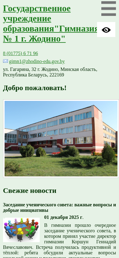 | AI-анализ | This website is the official online presence of Gymnasium No. 1 in the city of Zhodino, Belarus. It includes sections on the history, leadership, educational process, experimental activities, student welfare, and community organizations of the school. The site also features a schedule and contact information. The most frequently used words on the site include 'open,' 'section,' 'classes,' 'Zhodino,' 'gymnasiums,' 'gymnasia,' 'pupils,' 'cabinet,' '017,' 'council,' '2025,' 'work,' 'schedule,' 'help,' 'education,' 'day,' 'regime,' 'council,' 'library,' 'telephones,' and 'trust.' The site also includes sections for the parent university, engineering-technical center, and social-pedagogical support. The school's hours |