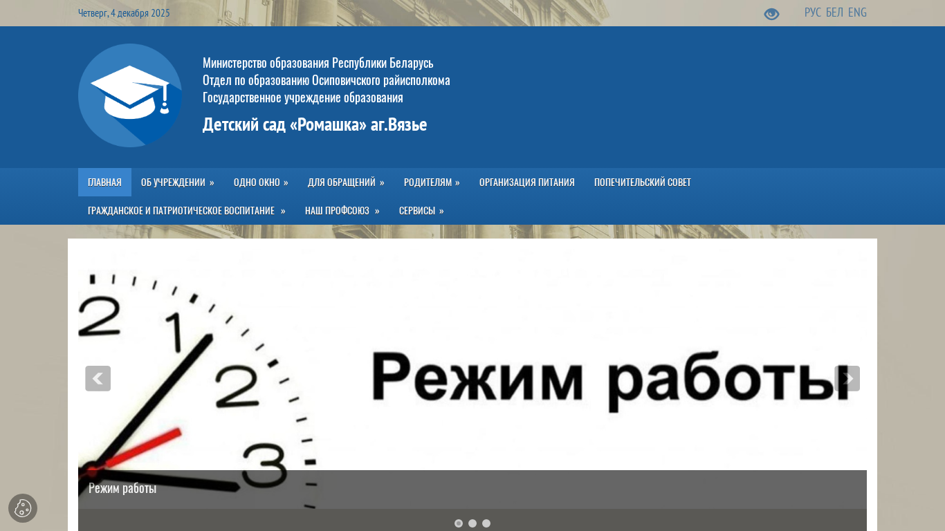 | Название / Заголовок | Детский сад «Ромашка» аг.Вязье |