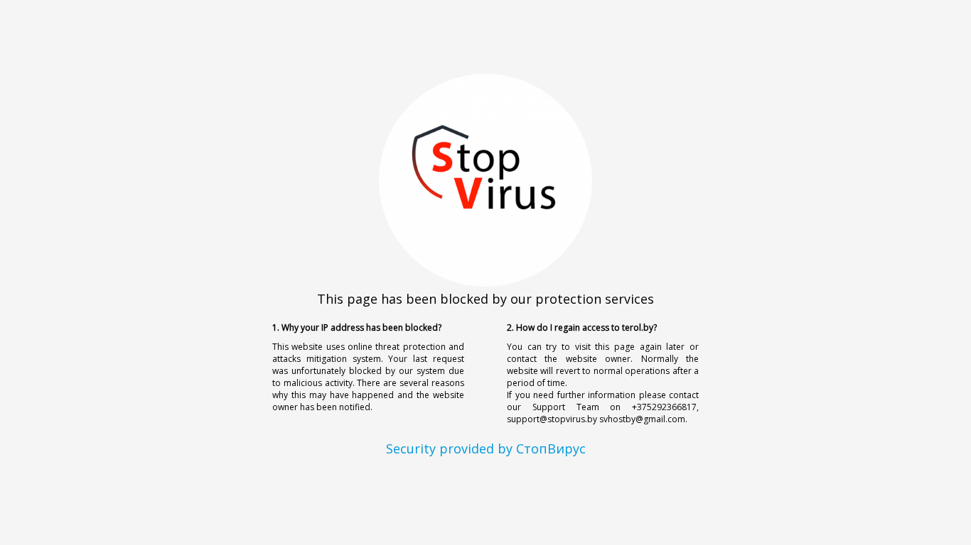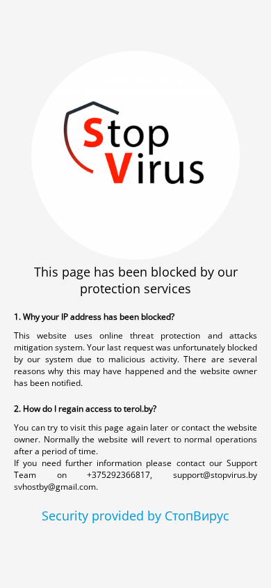 | AI-анализ | The website <potera.by> has been blocked due to malicious activity detected by its online threat protection and attacks mitigation system. The reason for the blockage is that the system identified your IP address as a source of potentially harmful traffic. The website owner has been notified and you may try to visit the page again later or contact the website support for further assistance. The security for this website is provided by СтопВирус. |