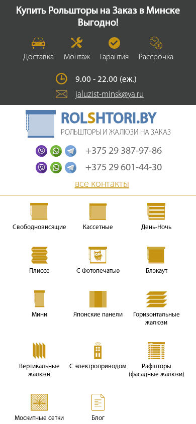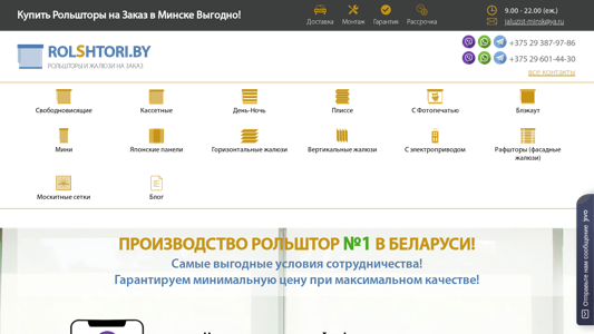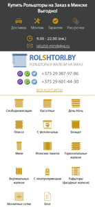 | Адрес | ежедневно, График работы производства:, Время:, Пн-Пт с 10.00 - до 18.00, Адрес:, Макаенка 23А, Схема проезда, ROL, S, HTORI.BY, РОЛЬШТОРЫ И ЖАЛЮЗИ НА ЗАКАЗ, +375 |