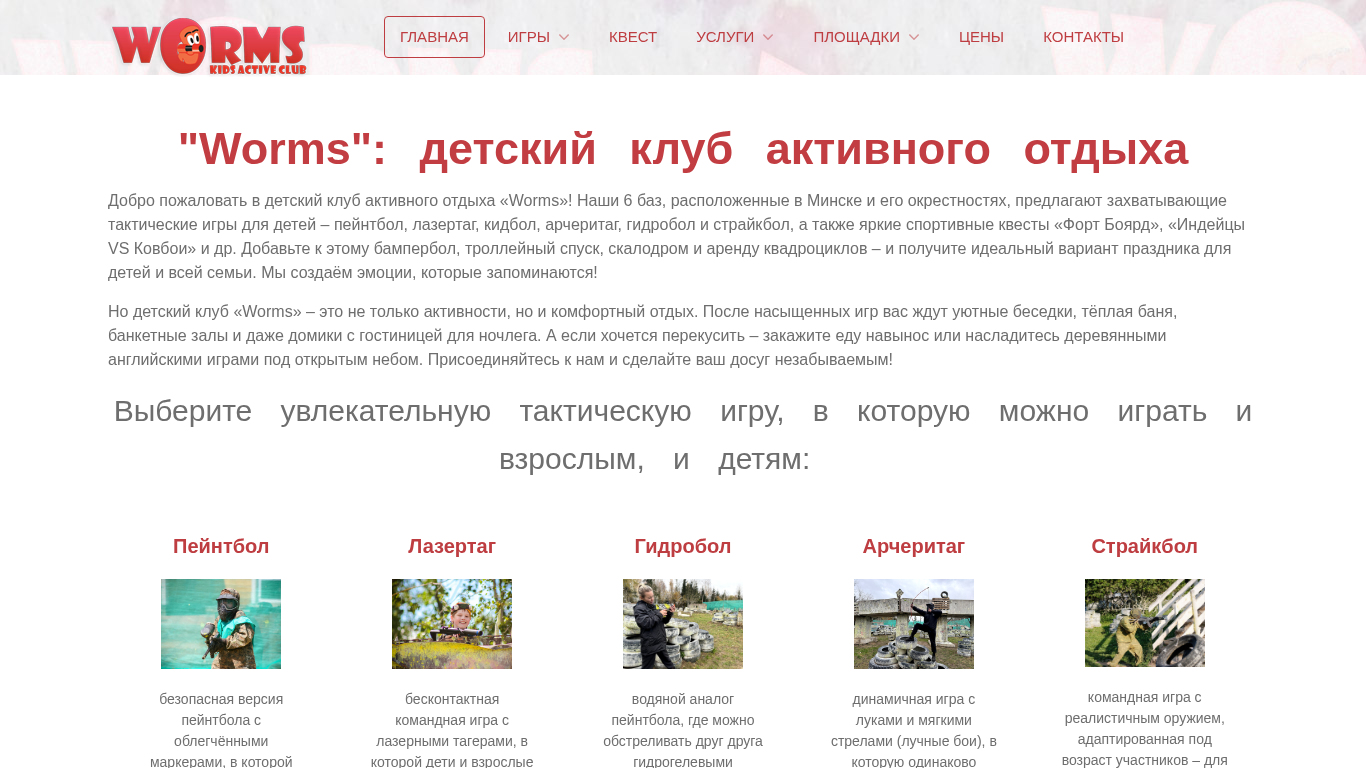 SEO-описаниеКлуб активного отдыха "Worms" в Минске и минском районе. Спортивные квесты, тактические игры и комфортный отдых для детей