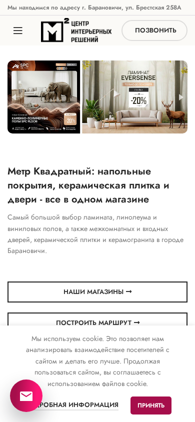 | SEO-описание | Метр Квадратный - напольные покрытия, двери и керамическая плитка в Барановичах ✔534 образца 34 брендов в одном шоуруме ✔Самый большой выбор в городе ☎ Звоните! +375 (29) 608-68-18 |