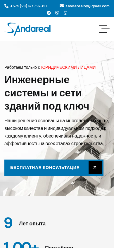 | SEO-описание | Sandareal.by — монтаж инженерных систем и сетей под ключ в Минске для юридических лиц: электромонтаж, вентиляция, отопление, автоматизация. Бесплатная консультация. |