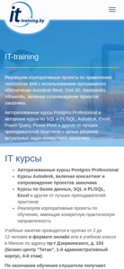 | Название / Заголовок | IT курсы, IT обучение, Autodesk, курсы Postgres Professional, PostgreSQL, курсы SQL и PL/SQL, курсы Excel, Power Query, Power Pivot |