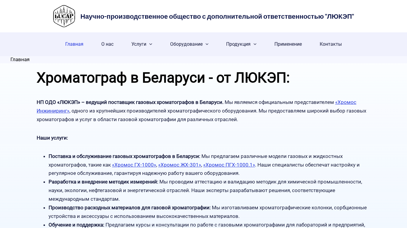 SEO-описаниеЛЮКЭП — эксперт в газовой хроматографии в Беларуси. Весь комплекс услуг для газовых хроматографов. Купить газовый хроматограф в Беларуси