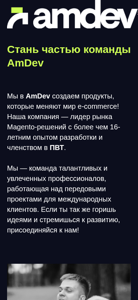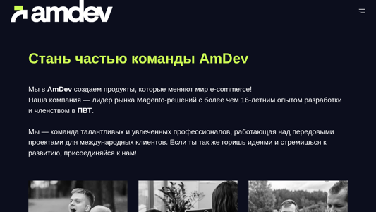 | AI-анализ | The website AmDev is a Magento solutions company with over 16 years of experience and a team of talented and passionate professionals working on cutting-edge projects for international clients. The company is a market leader and a member of the Magento Professional Solution Partner program. The website offers a contact page for those interested in joining the team and mentions the availability of educational programs and certifications for career growth and expertise development. The team is international and provides a valuable and exciting experience for employees collaborating with leading industry specialists. The website emphasizes the company's focus on creating innovative solutions that make shopping convenient and effective for users, as well as its commitment to the growth and development of its employees. The website also highlights the team's friendly and supportive atmosphere, flexible work conditions, and a corporate life filled with events and team-building activities. |