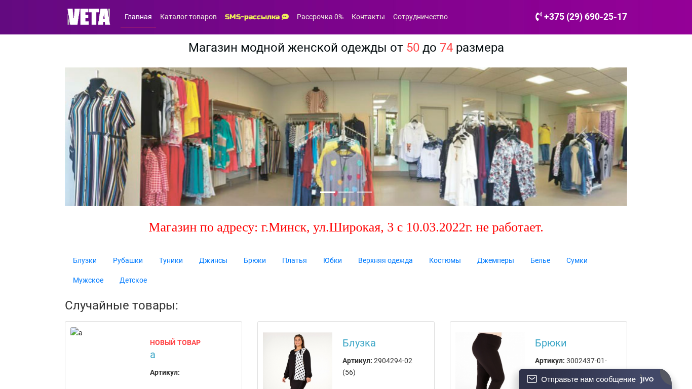 | Ключевые слова | магазин большие размеры одежда магазин большая мода минск рассрочка халва карта покупок магнит черепаха смарт полных людей полных женщин турция пуховик платье джинсы вета veta одежда больших размеров модная одежда ветамода |