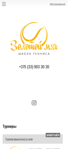 | AI-анализ | This online resource, titled "Золотой мяч - Школа тенниса" (Golden Ball - Tennis School), is dedicated to tennis lessons for children and adults. The website provides information on various tennis tournaments, including locations, categories, and contact details. The main office is in Brest, Belarus, located on ul. Gavrilova, 6. Visitors can reach the school by calling +375 (33) 903 30 30 for more information or to make reservations. The website includes sections on "Главная" (Home), "О нас" (About Us), "Турниры" (Tournaments), and "Услуги" (Services), with contacts also provided. Tournaments mentioned on the website include a weekend tournament in Brest from April 29-30, 2023 |