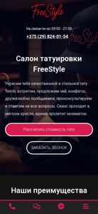 | AI-анализ | Этот онлайн-ресурс — это веб-сайт для салона татуировки и постоянного макияжа FreeStyle, расположенного в Бресте, Беларусь. Сайт предоставляет информацию о услугах салона, портфолио и контактных данных. Пользователи могут просматривать местоположение салона на карте и связываться с ним по телефону со вторника по воскресенье в период с 9:00 до 21:00, используя предоставленный номер телефона. Салон предлагает комфортное расположение для посетителей, индивидуальное развитие эскизов для клиентов и использование профессиональных татуировочных красок американских брендов. Приоритетом салона является безопасность клиента, что достигается за счет использования одноразовых материалов и специализированного оборудования. Сайт также упоминает наличие предложения чая и конфет во время посещений. FreeStyle — это уважаемый тату-салон в Бресте, который ценит профессиональное развитие и использует современные технологии для своих услуг. Клиенты могут узнать о доступных услугах и забронировать их, включая коррекцию и удаление татуировок. |