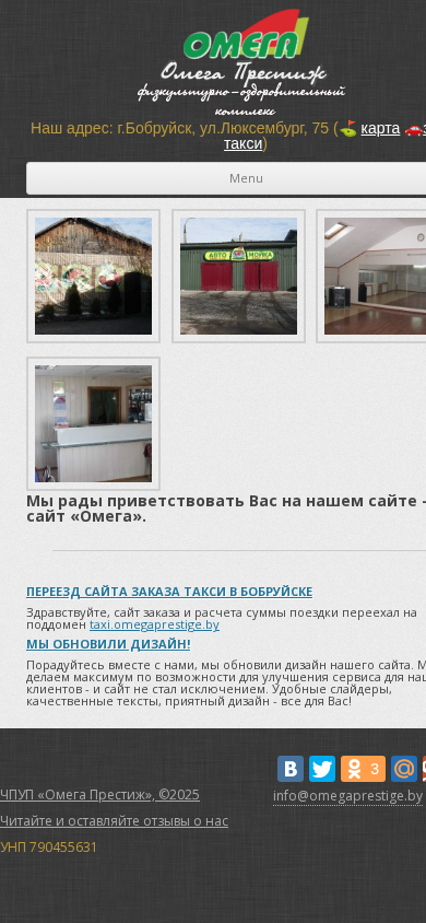 | AI-анализ | --- The website "Omegaprestige.by" is the online presence of a recreational complex named "Omega Prestige" located in Bobruisk, Belarus. The address is Luxembourg Street, 75. The site offers various services including a hotel, sauna, fitness center, taxi, auto parking, and car wash. The website has been updated with a new design. Users can access the taxi service on the subdomain taxi.omegaprestige.by. The design includes user-friendly sliders and high-quality texts for an enjoyable browsing experience. The site also includes information about the company, contact details, and user reviews. The domain registration number is 790455631. The site is recommended to be accessed using updated and recommended browsers such as Opera or Firefox for optimal performance. |