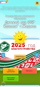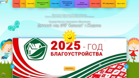 | AI-анализ | This online resource is dedicated to the educational institution "Detsky sad #8" Kolosok" in the city of Zhodino, Belarus. The website provides information on the administration, licensing, conditions of admission, and normative legal documents of the kindergarten. Visitors can also find news about the kindergarten, information on succession from a general secondary education institution, and history and achievements of the educational institution. The website offers advice on various topics, such as childcare, nutrition, and educational processes. It also includes information on vacancies, a union committee, and a one-window service for assistance to people with disabilities. The website provides an electronic application form, work schedules for the administration and the kindergarten, and information on administrative procedures and higher authorities. The website offers various forms and a telephone directory for contact information. It also includes information on the educational process for parents, available spaces in |