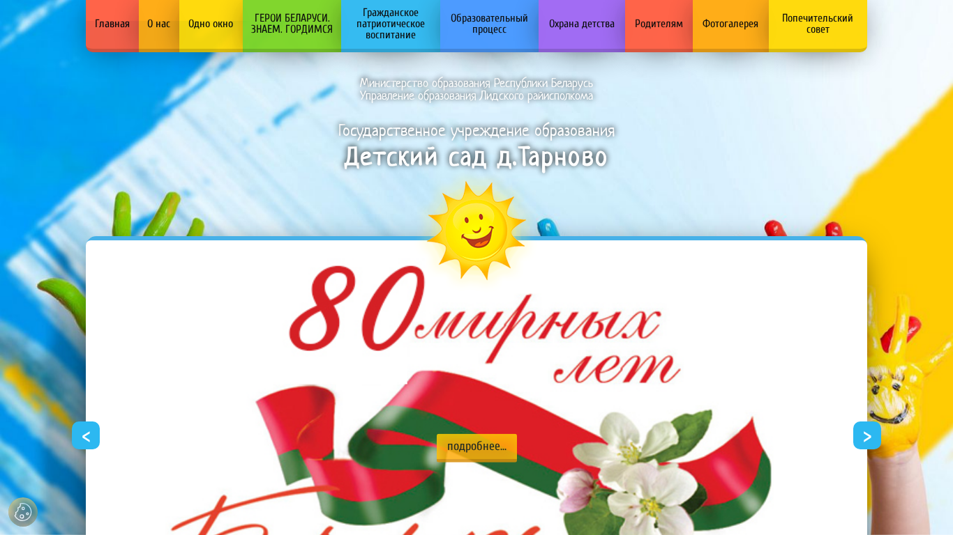 | AI-анализ | --- The portal Sadtarnovo.edu-lida.gov.by is a Belarusian educational institution website named "Детский сад д.Тарново" (Children's Garden of Tarasovo). This website provides information about the kindergarten, its management, team, news, work schedule, and various educational and cultural initiatives. The keywords include 'education', 'institution', 'kindergarten', 'Tarasovo', and 'Belarus'. The top words are 'children', 'work', 'news', and 'schedule'. The website includes sections on the kindergarten's leadership, collective, news, protection of labor, primary trade union organization, and anti-corruption policy. There is also information on the educational process, special groups for children with speech impediments, associations for various interests, inclusive education, child protection, and children's rights. The |