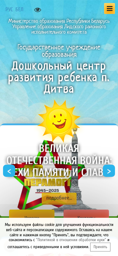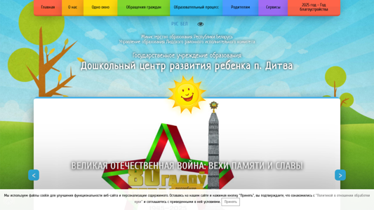 | AI-анализ | The web project "Дошкольный центр развития ребенка п. Дитва" (DCRR Ditva) is an educational institution based in Belarus, specifically in the city of Лидский район. The title of the website reflects its role as a preschool development center for children in the town of Дитва. The description section indicates the project's focus on education, development, and news, with keywords such as "образования" (education), "подробнее" (more details), "развития" (development), and "дитва" (name of the town). The top_words list suggests that the website offers information on the center's history, achievements, tasks, and functioning, as well as news, contacts, and various educational services. The unp field is empty, and the fragment only contains the homepage title. The website also features |