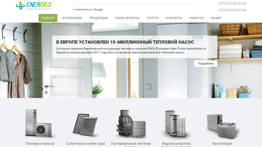| SEO-описание | Энергео представляет на белорусском рынке продукцию шведской компании NIBE AB – ведущего европейского производителя тепловых насосов с более чем 40-летним опытом. |