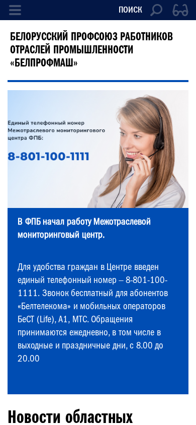 | Название / Заголовок | Главная - БЕЛОРУССКИЙ ПРОФСОЮЗ РАБОТНИКОВ ОТРАСЛЕЙ ПРОМЫШЛЕННОСТИ «БЕЛПРОФМАШ» |