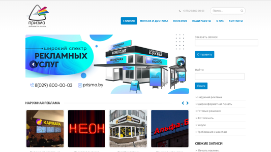 The website is a advertising company based in Mogilev, Belarus, offering outdoor advertising services and large format printing. The company specializes in designing, manufacturing, and installing various types of advertising materials, including billboards, light boxes, consoles, and custom-made signs. The website provides detailed information about their products and services, including prices, and contact details for inquiries.