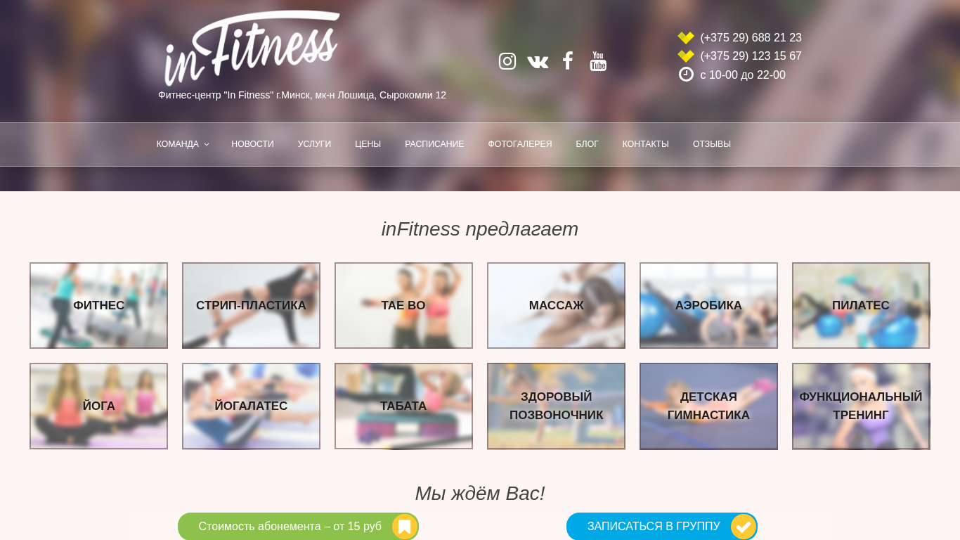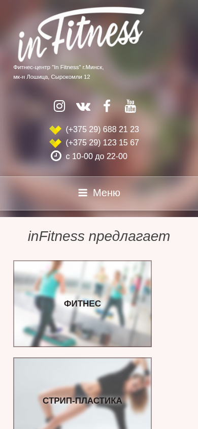 | Адрес | Расписание, Фотогалерея, Блог, Контакты, Отзывы, Контакты, Фитнес-центр «In Fitness», Минск, мк-н Лошица, ул. Сырокомли, 12 |