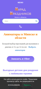 This website is dedicated to organizing children's parties and offering animators for hire in Minsk and the surrounding region. It boasts over 80 programs for children aged 3 to 10 years. The animators come in costumes and can be booked for home visits, cafes, or daycare centers. The site provides information on pricing and services, including games, contests, and tasks, as well as characters like Santa Claus. Users can contact the service via Viber and can choose from different age categories for their parties. The website also offers additional services such as balloon decorations and children's tattoos. The site has received positive reviews and has worked on over 3500 children's events, serving over 45,500 children. Clients include well-known organizations such as the Minsk Zoo, Sportmaster, and Beltelecom.