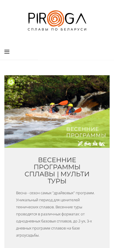 | SEO-описание | PIROGA - сплавы, водные походы на байдарках, рафтах по рекам Беларуси. Сплавы проводятся круглый год! |