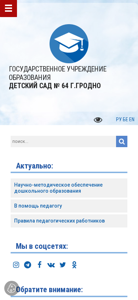 | AI-анализ | The web project "Детский сад № 64 г.Гродно" (Children's Kindergarten No. 64 in Grodno) is an official website for a state educational institution located in Grodno, Belarus, at ul. Kurchatov, 42. The site provides information about the kindergarten, its management, staff, news, policies, and services. Visitors can find details about the kindergarten's address, contacts, and visiting hours for both the public and higher authorities. The site includes sections for administrative procedures, electronic applications, and information on the kindergarten's rules and policies regarding personal data protection. Additionally, the site features sections on the kindergarten's mission, educational approach, and various services, such as catering, additional educational programs, and support for children with special needs. The site also provides information on the kind |