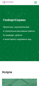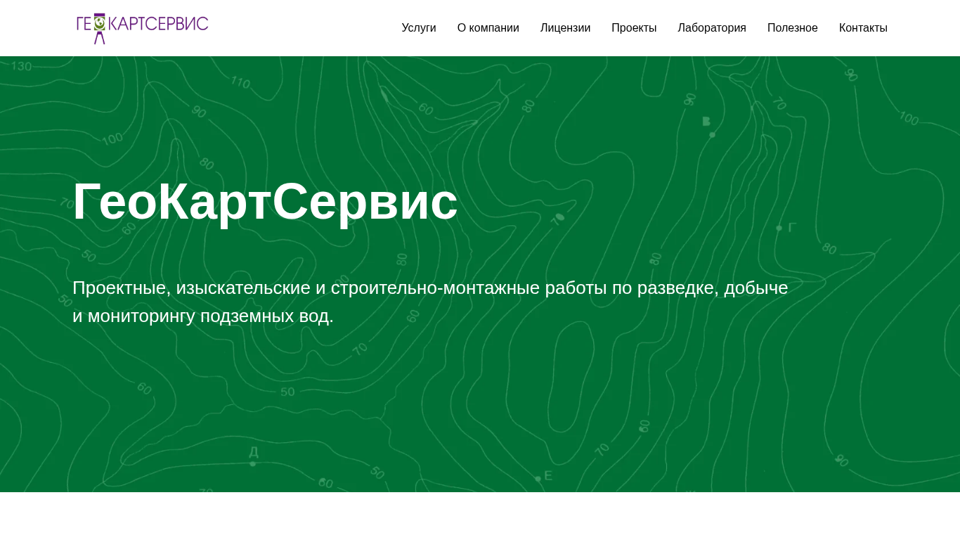 | AI-анализ | --- This website is for GeoKartService, a Belarusian company providing project, exploration, and construction services for water exploration, extraction, and monitoring. They offer comprehensive project design, engineering surveys, and construction works. The company ensures full responsibility for work quality, adherence to regulatory technical documentation, and successful completion of state expertise. Preliminary materials are provided at every stage of engineering surveys, and projects are completed in optimal timeframes. Their team of 35 professionals operates with new certified equipment, such as a drilling rig and a static soil testing station, both from 2013. Any necessary corrections and additional works are covered by GeoKartService, and technical reports can be issued in English. The company values professionalism, quality, and reliability, offering innovative solutions with consideration for local energy resources and environmental sustainability. They use only high-quality materials, products, and components, and |