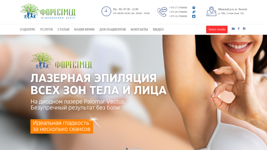 | AI-анализ | --- The website "Forestmed.by" is a multidisciplinary medical center based in Borovlyanski, Belarus. It offers various medical services including urology, gynecology, ultrasound (USI), ear, nose and throat (ENT), mammology, pediatrics, therapy, neurology, ophthalmology, trauma surgery, cardiology, dermatology, endocrinology, functional diagnostics, and blood and urine analysis without waiting in lines. The website includes information about the center, its services, and contact details. Keywords associated with the website include 'узи' (ultrasound), 'терапия' (therapy), 'детский' (pediatrics), 'лечение' (treatment), 'ударно-волновая' (shockwave therapy), 'увт |