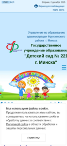 | AI-анализ | The website is a government educational institution, specifically a kindergarten named "Детский сад № 221 г. Минска" (Childcare Center No. 221 of Minsk). The title and description in Russian suggest that it is an administrative page for the kindergarten, providing information on its location, administrative procedures, and organizational structure. The top_words data reveals that the site contains news, information on administrative procedures and normative legal acts, and a section for vacancies. The site also includes a section for parents, with information on patriotic education and feeding guidelines, as well as a news feed and a map of the site. The design is standard with a medium font size, standard line spacing, and a monochromatic color scheme. The site does not display images and offers a text-only version for visually impaired users. The site is managed by the Education |