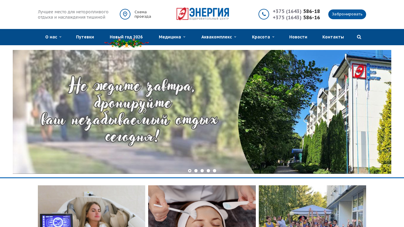 | Адрес | Оздоровительный центр «Энергия», Лучшее место для неторопливого отдыха и наслаждения тишиной, Схема, проезда, Меню, Забронировать, +375 |