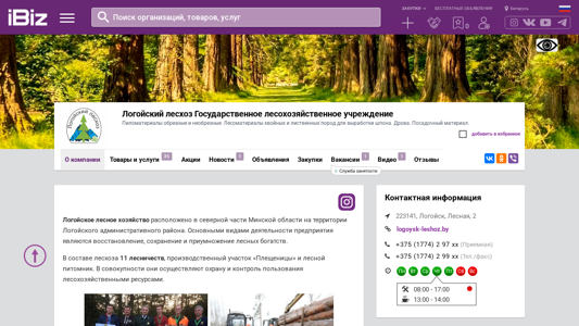 | AI-анализ | This website is for Lогойский лесхоз (Logoysky Leshoz), a state-owned forestry enterprise located in Lогойск, Minsk region, Belarus. The company specializes in producing and selling various types of timber and wood products, including obraznye and nerazreznye pilomateryaly (obraznye - oblique cut, nerazreznye - square cut) for making shpona (shingles), lesomateryaly (wood materials) of coniferous and deciduous tree species, and drovy (firewood). The website provides contact information and a map for visiting the company. |