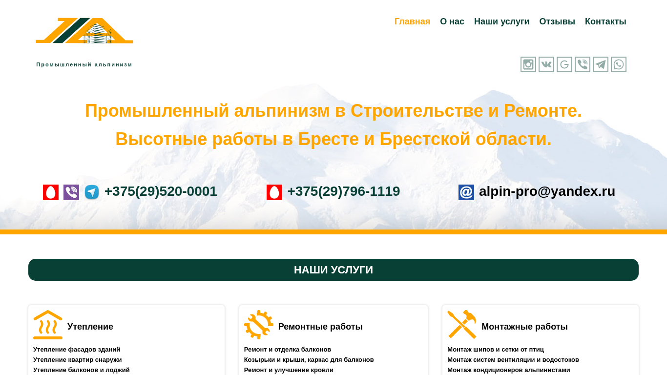 | SEO-описание | Промышленный альпинизм в Строительстве и Ремонте. Все высотные работы в Бресте и области. Наши услуги доступны каждому. |