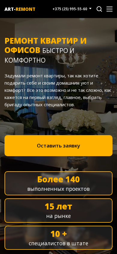 | AI-анализ | The web project ART-REMONT is a renovation company based in Minsk, Belarus. The company specializes in repairing apartments and offers various types of renovation services including cosmetic, capital, designer, and premium renovation. ART-REMONT provides technical and design project development, material selection, and author oversight. The company has a team of over 10 specialists and has been operating for 15 years. They guarantee reliable results using modern materials and offer a three-year warranty on all types of work. The website provides contact information including a phone number, email address, and physical address in Minsk. The company also has a presence on various social media platforms. ART-REMONT has completed over 140 projects and has a high customer satisfaction rate with 98% positive reviews. The company prides itself on providing renovation services without compromises. |