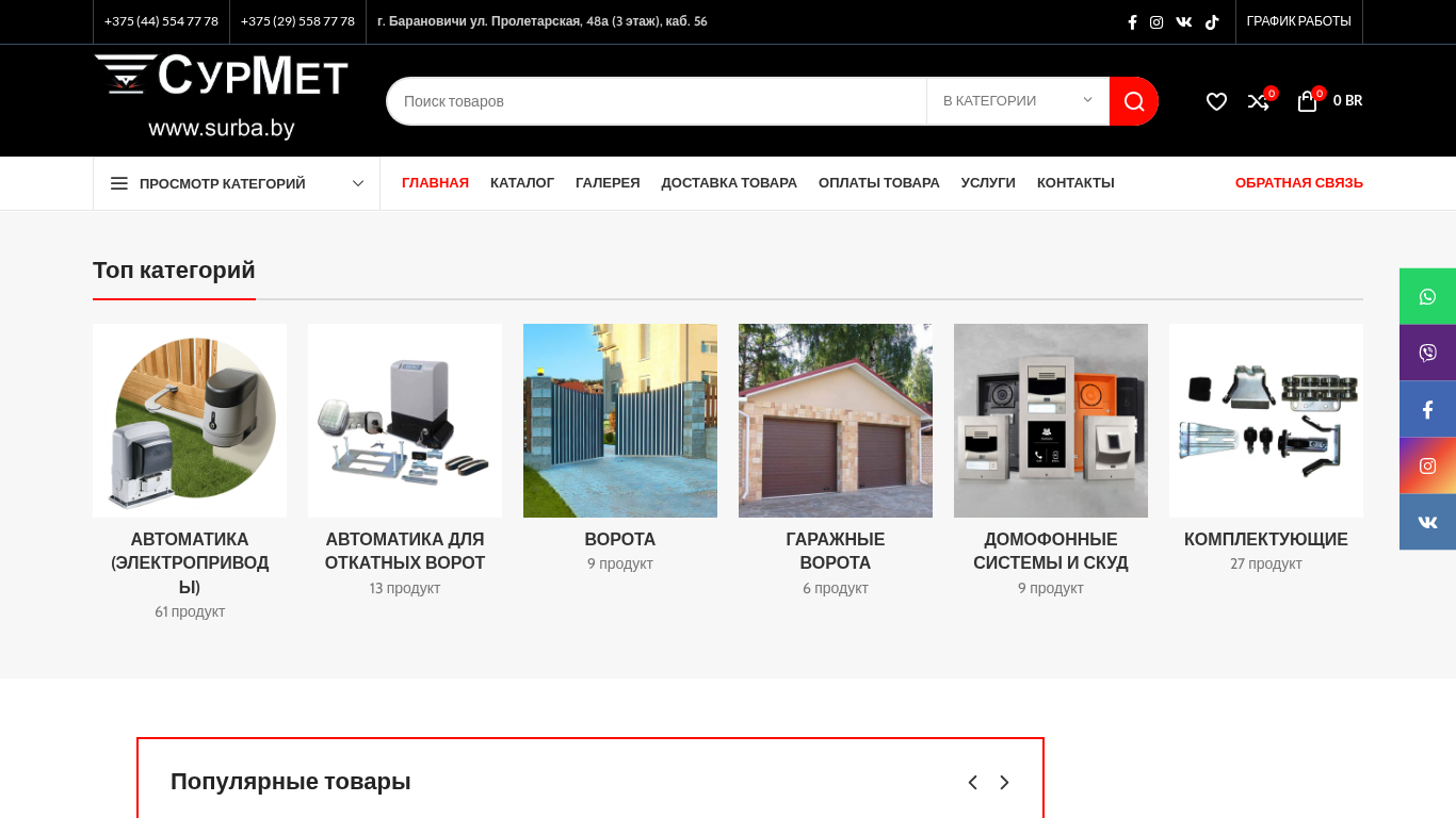 | AI-анализ | The portal Surba.by, operated by СурМет, offers gates and automation in Baranovich and the entire Republic of Belarus at low prices. The website includes components for gates, automation, and related services, such as repairs and installations. The main product categories include automatic gates for various types, including sliding, rolling, and industrial gates, as well as manual gates and accessories. Users can also find doorphones and security systems, and various components like locks, hinges, and automation parts. The company provides repairs and installation services, as well as technical maintenance. The portal also offers a search function and the ability to add items to a favorite list or compare products. The contact information includes two phone numbers and an address in Baranovich. The website is available in Belarusian and Russian languages. |